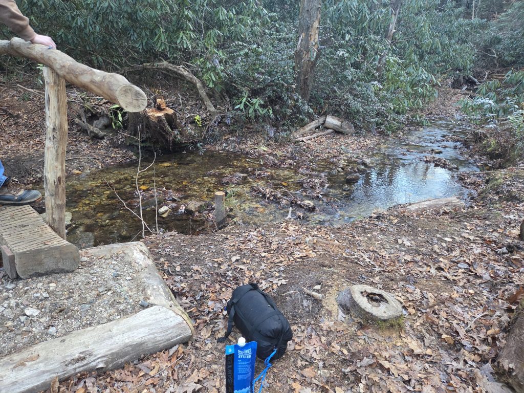 At the bottom of the descent, we had finally found the part of the creek with running water again. This was much needed, as I was a little light headed for a moment. This was also the first time I consistently went ahead and trusted my filtration system to drink freshwater (as well as Rylan, who I gave my Lifestraw bottle too).
