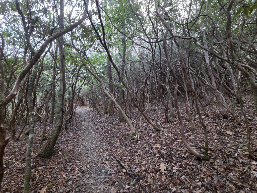 At some point, the trail maneuvers through these super interesting, thick collection of trees: