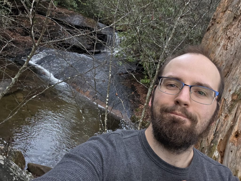 Rylan was inspecting it with his headlamp out of concern of if a bear may be posted within. He said he saw what appeared to be a box wrapped up in a red cloth on the entrance, and then suddenly said he saw eyes reflecting back in his light. I was not able to confirm any of this, but being in an already heightened state of paranoia in the woods, I noped out and we decided the upper falls were nice enough of a view.