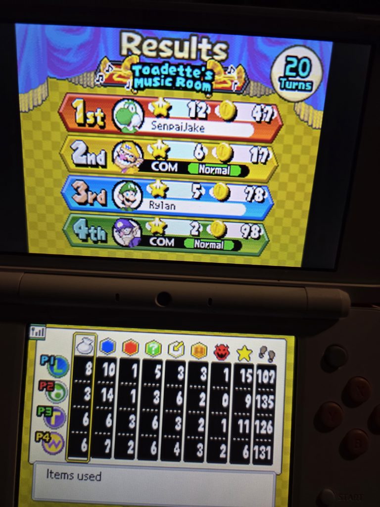 We got in there and began playing Mario Party DS. This was my first time ever playing this, and I was a little exhausted from the hike so at first I wasn’t too into it. But then, things began ramping up and I ended up having the luckiest Mario Party game of my life: